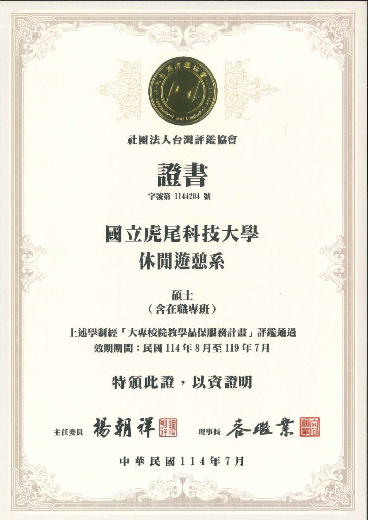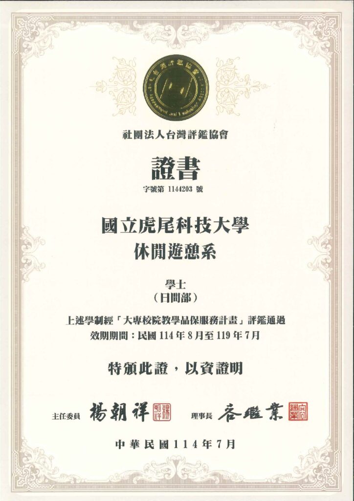 國立虎尾科技大學休閒遊憩系114年度通過大專校院教學品保服務計畫