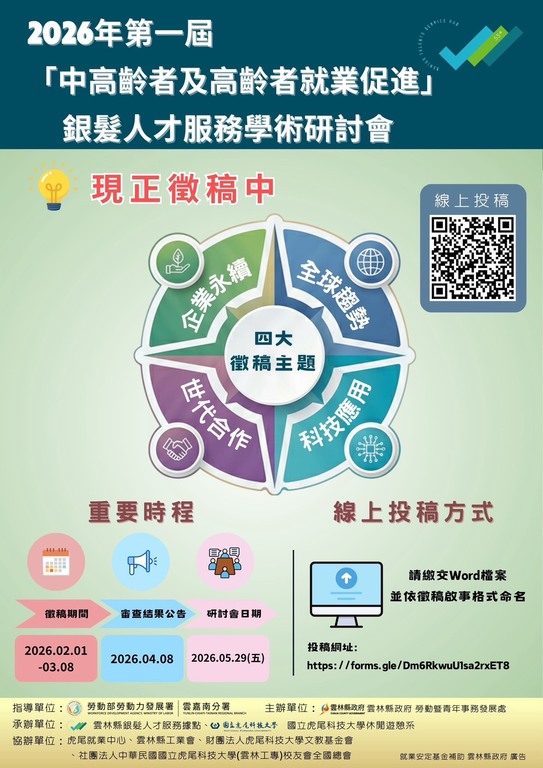 2026年第一屆「中高齡者及高齡者就業促進」銀髮人才服務學術研討會