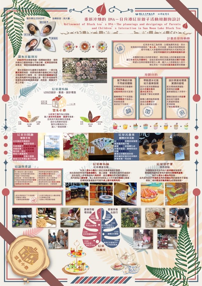 「臺茶18號」這種以印度阿薩姆紅茶與臺灣野山茶配種而成的紅茶,其茶湯呈現鮮紅色,蘊含淡淡肉桂與薄荷香氣,在經過921地震之後成為主要產業,開啟了魚池鄉茶產業的契機,更成為了遊客來到日月潭必買的伴手禮之一,可說紅茶是組成社區的DNA之一;紅茶多半會加工為茶葉,以極為講究茶品、茶水、茶具與沖泡過程的「老人茶」方式品嚐,因為沖泡時間耗時,現今的年輕人大多選擇其他更便利的方式來飲用紅茶,卻使得茶藝的文化與精神逐漸失卻,本團隊改變以往的品茶模式,使紅茶給人的印象重新淬煉,讓它更多元化與趣味化,並結合當地特色及資源規劃成親子活動,希望以全新的樣貌來吸引人潮,讓大人小孩都能喜愛,使紅茶再一次成為社區活絡重要的關鍵。
