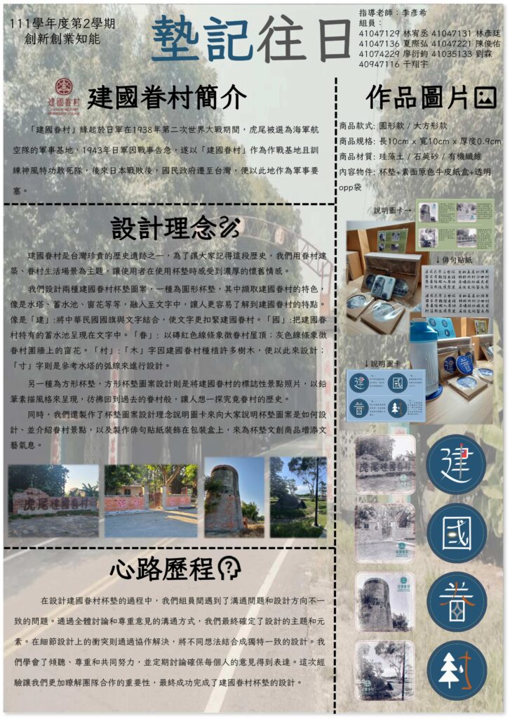 由李彥希老師指導學生林宥丞、林彥廷、夏際弘、陳俊佑、廖衍鈞、劉霖、干翔宇等,建國眷村是台灣珍貴的歷史遺跡之一,為了讓大家記得這段歷史,